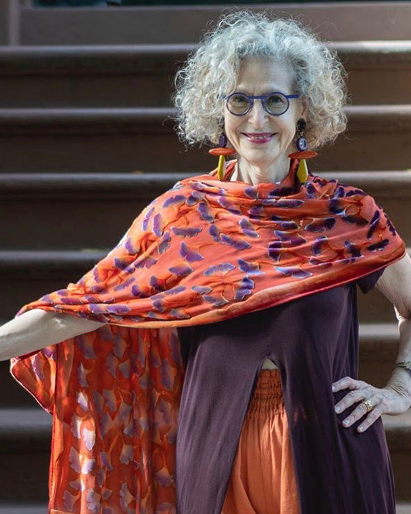 "This shawl is really a work of art -colors are gorgeous and print is timeless-materials are beautiful"